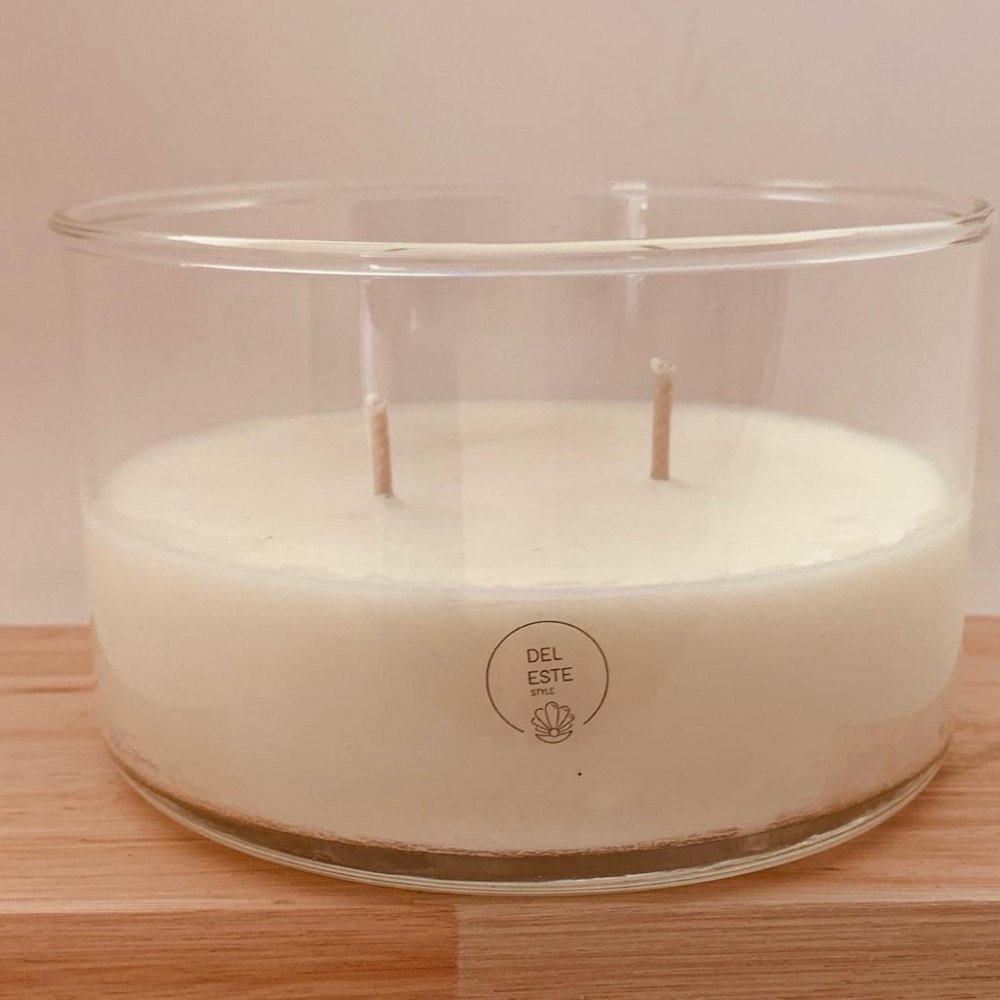 Vela de cera de soja, 100% natural en vaso de vidrio con tapa.